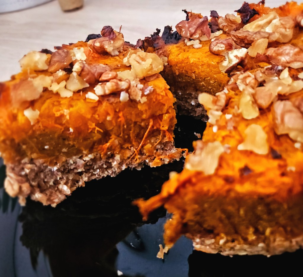 Tartă de dovleac cu scorțișoară și blat de ovăz cu mere