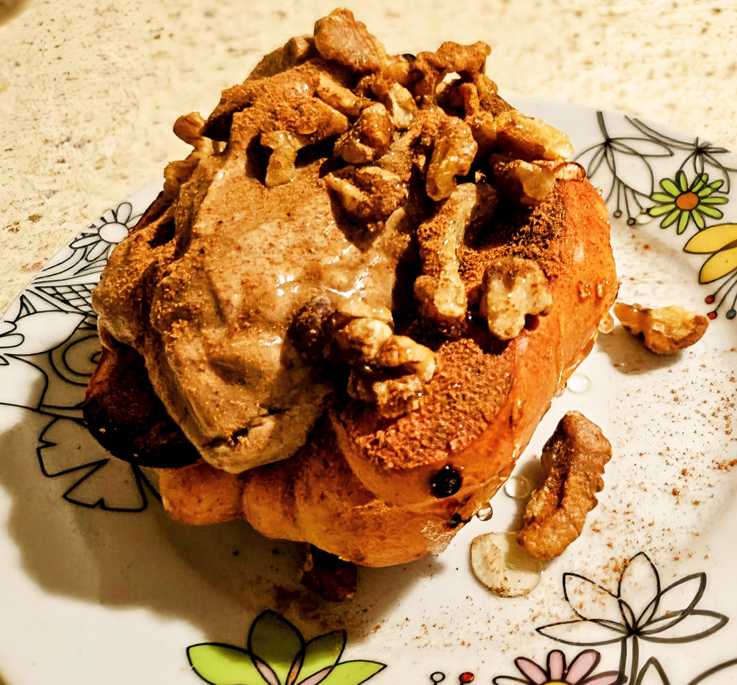 Când mă gândesc la desert de toamnă, amintirea puternică a aromei de dovleac copt îmi inundă nările. Așa că am ras dovleac, l-am alintat cu scorțișoară și l-am călit în tigaie. Între timp, am amestecat ovăz cu măr ras, ceva esențe și am băgat amestecul într-o tavă de tort în airfryer, cam 10 minute, apoi am adăugat și dovleacul călit pentru încă 10 minute, cu un topping de nuci.