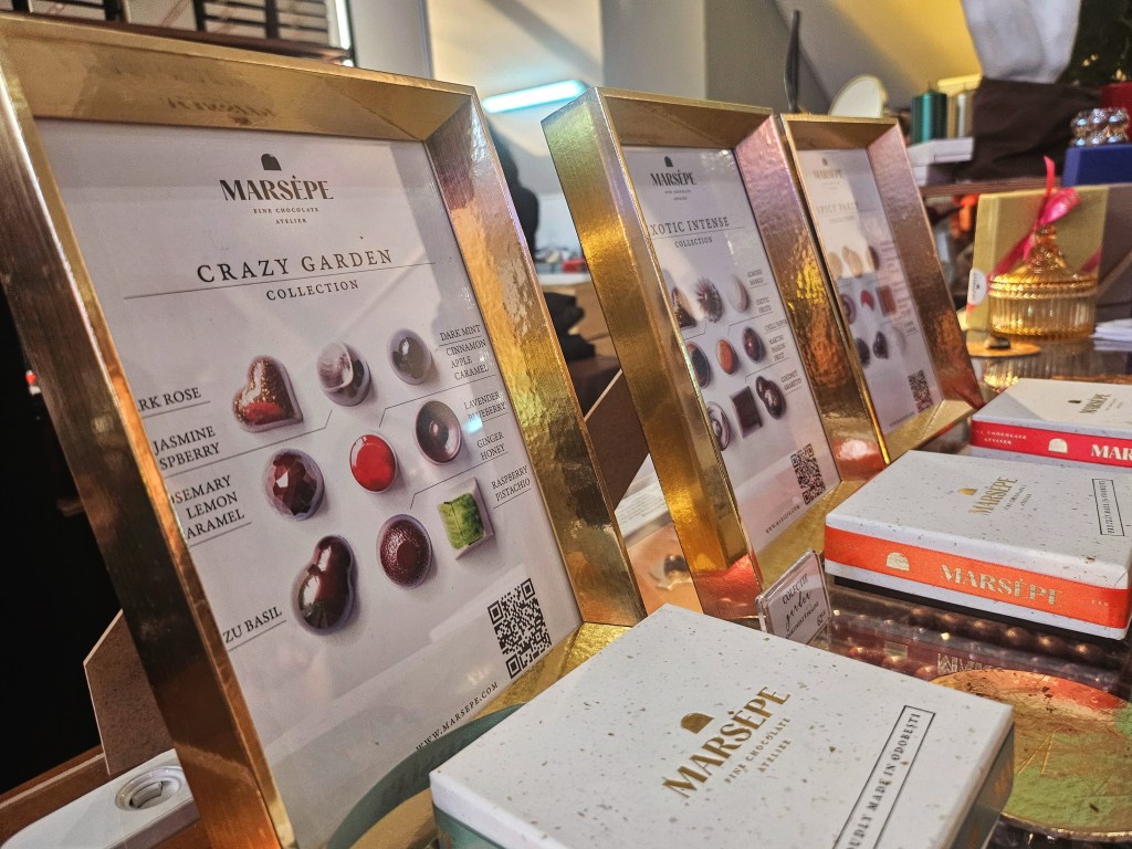 Când am ajuns la standul lor, a fost un leap of faith; mi-am dorit mi-am dorit ca în acest an să fiu un Moș Crăciun cu un conținut mai… rafinat în sac pentru familia mea, așa că am decis să cumpăr prima dată de la ei, fără a avea ceva la dispoziție pentru degustat. M-am bucurat însă că aveam libertatea de a-mi „personaliza” pachețelele cu ce sortimente doream. Apoi domnul care mă servea, mi-a întins o bucată de… Catharsis și apoi totul s-a oprit.