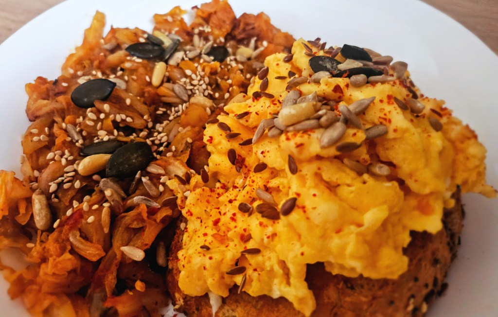 Dacă încă nu ți-am dat motivația necesară să intri și tu în clubul psihopaților care se trezesc la 5 AM, fac un workout de-o oră și apoi se ferchezuiesc pentru birou, sper, totuși, să-ți mai oferit o sursă de inspirație de ce ai putea mânca într-o dimineață chill, de lucru remote 🙂